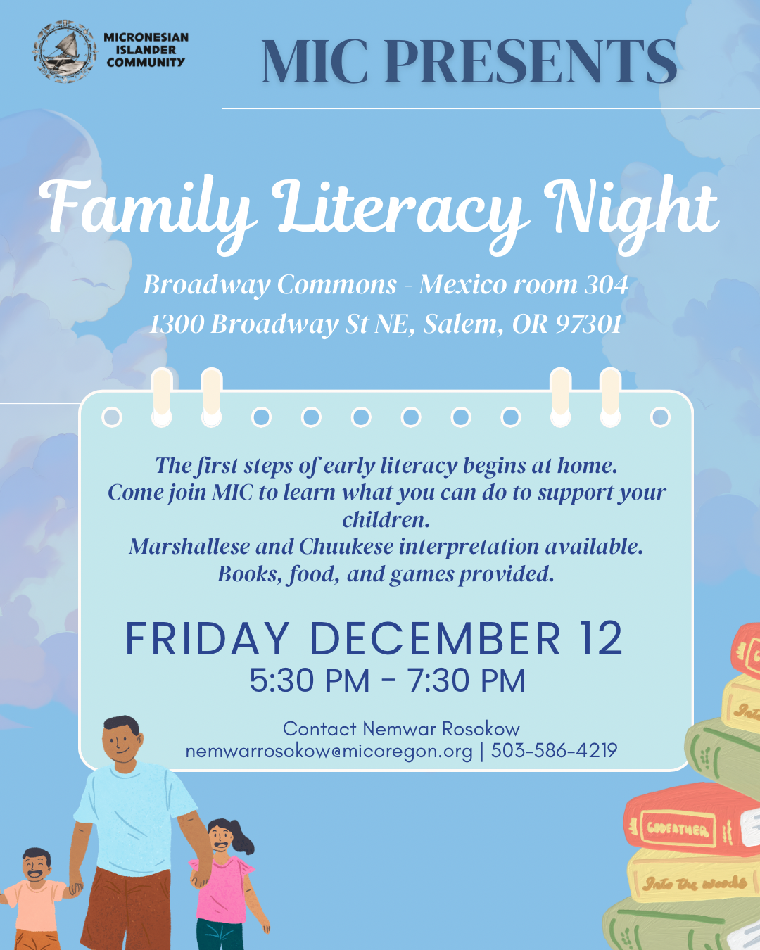 The first stages of early literacy begins within our homes. MIC is proud to present our Family Literacy Night, where community members will uncover early literacy and the actions families can take to support our youth.