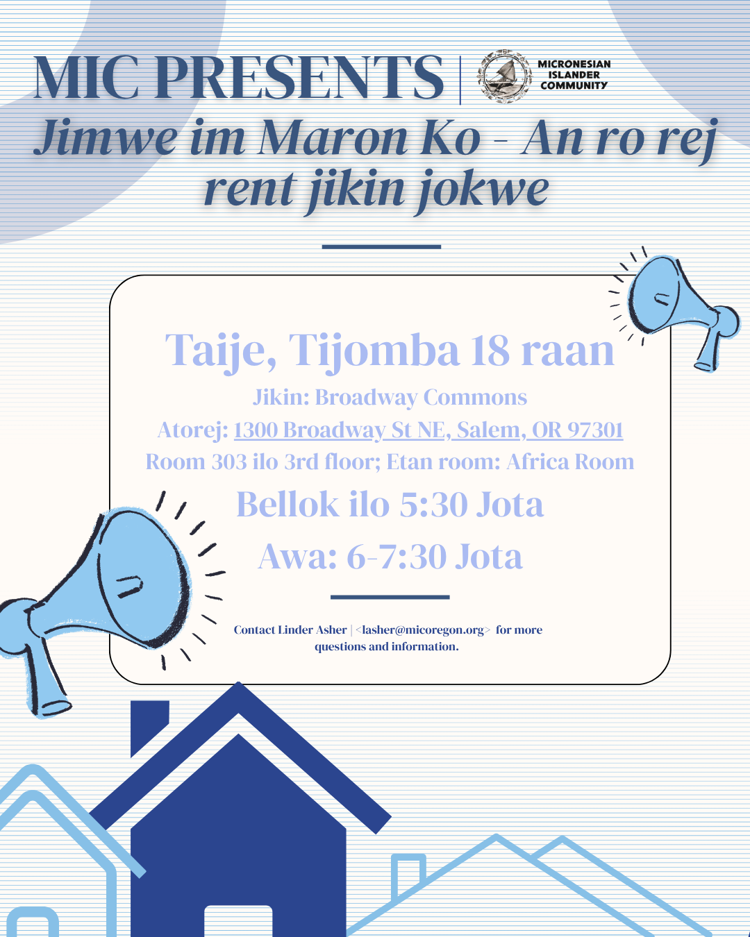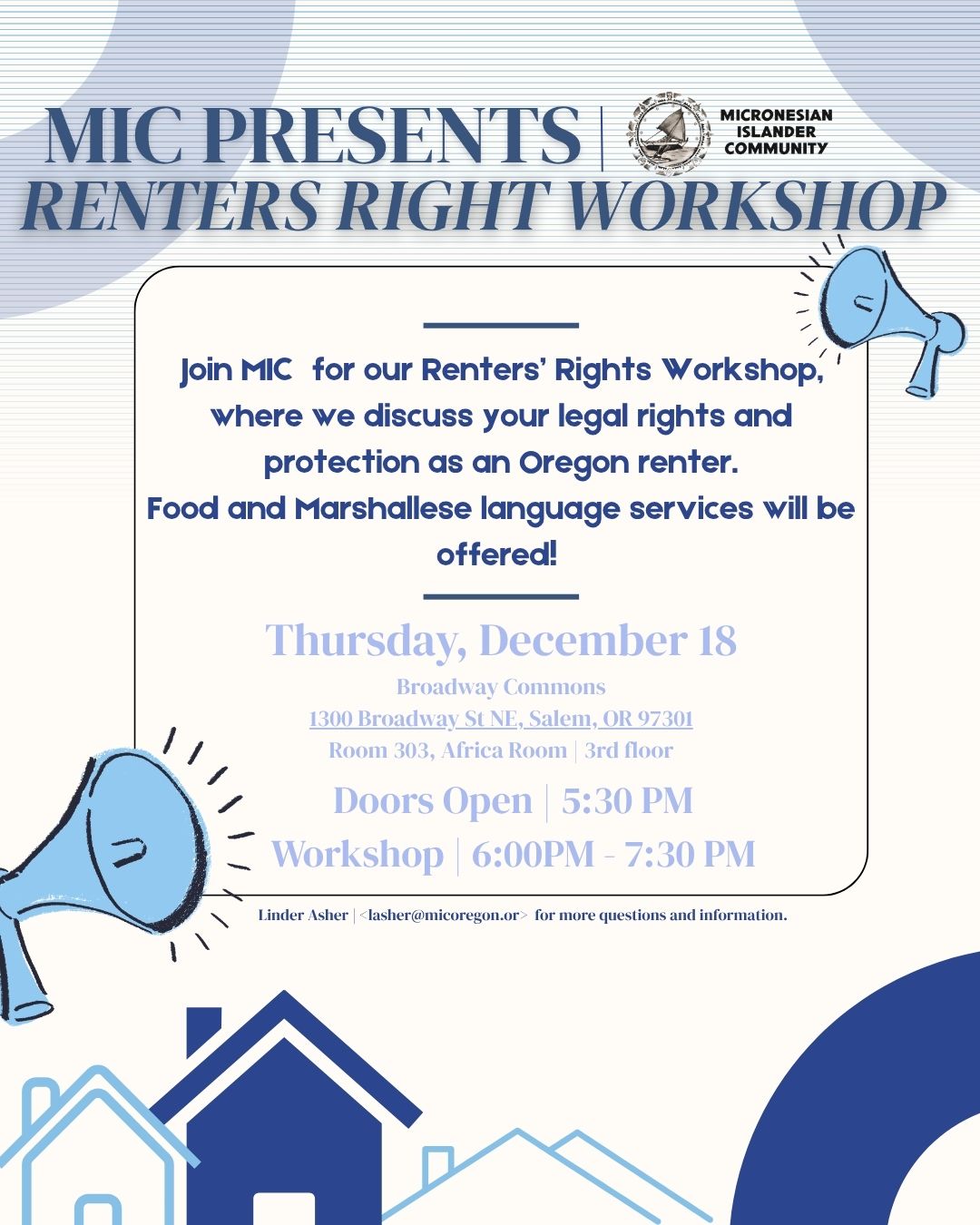 Thursday, December 18th – Renter’s Rights Workshop (English Speaker with Marshallese Translators available)